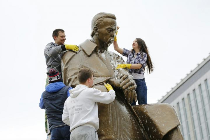 В День Радио 7 мая студенты радиотехнического факультета УрФУ традиционно отмывают памятник Александру Попову. Данная традиция зародилась среди студентов в 1995 году и продолжает своё существование. С праздником, военпенсы-радисты!