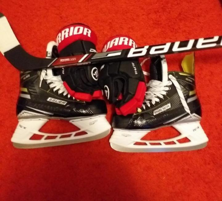 А-А-А, пацаны! Купил себе новые коньки. А на причитающиеся мне 10 тысяч, я, по совету друзей, прикупил ещё новые краги и клюшку.