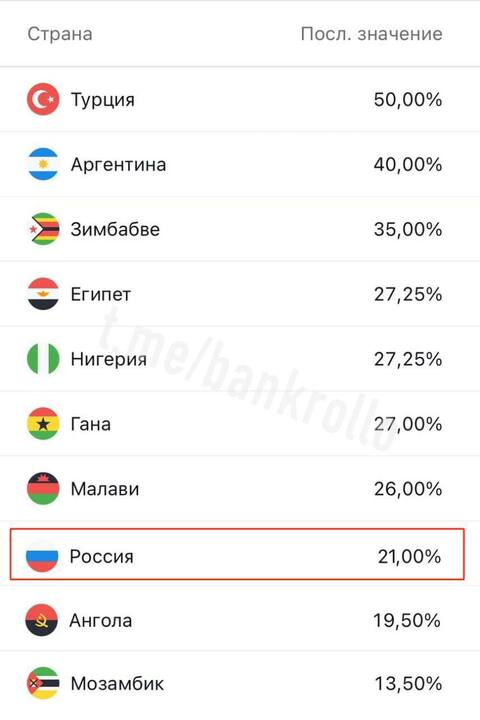 КЛЮЧЕВАЯ СТАВКА Не увидел в этом списке стран, из бывших республик СССР, что- необычно,т.к в понимании ,было ,что РФ- фундамент и основа и в постсоветском пространстве сохранилось лидерство.